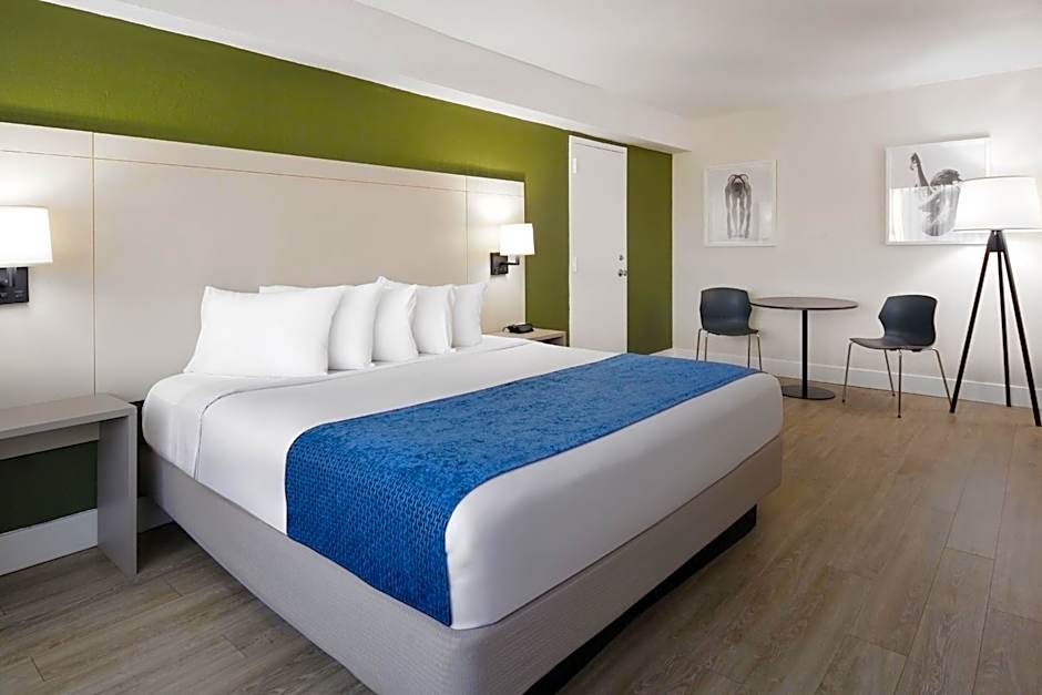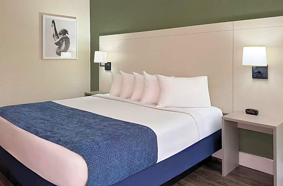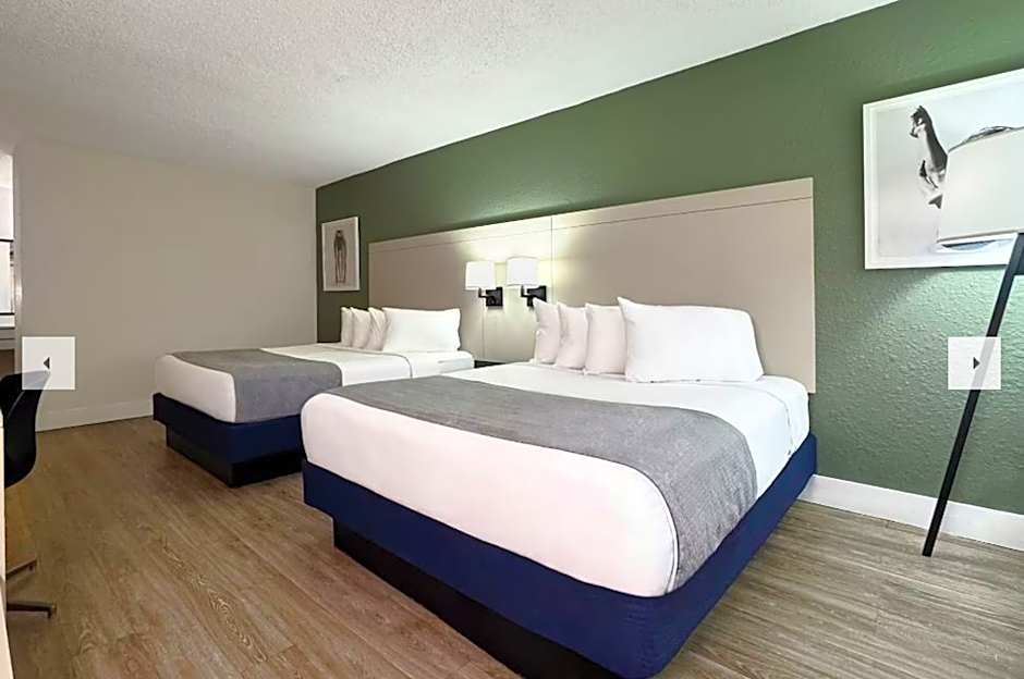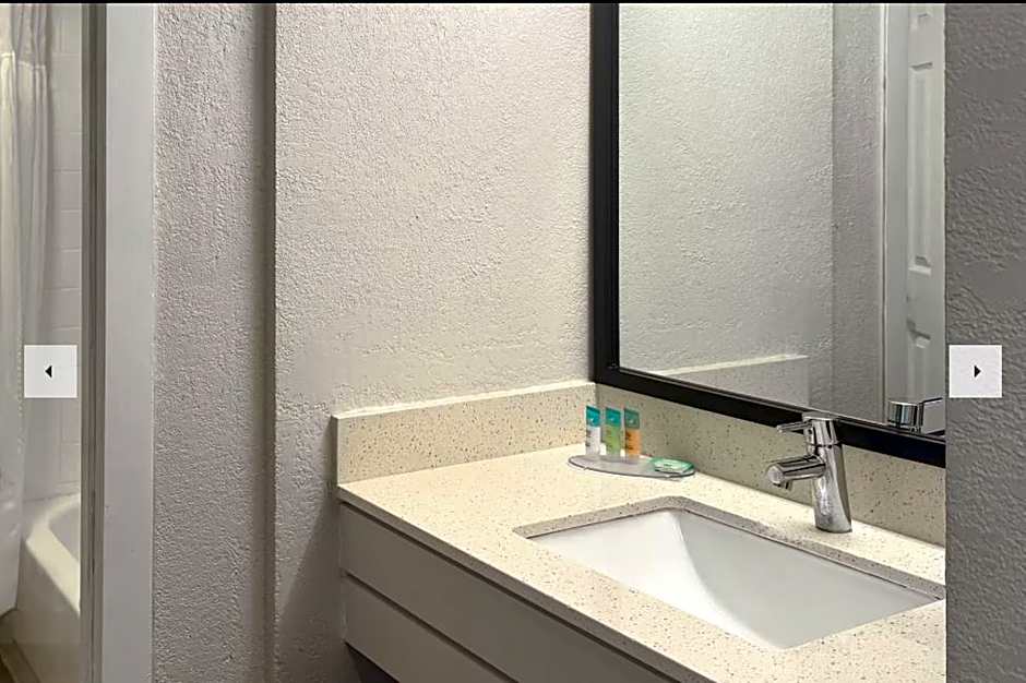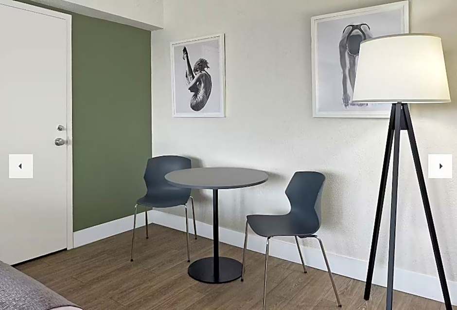 This room features a flat screen TV and a workstation. A small refrigerator and microwave are provided. A private entrance is included.